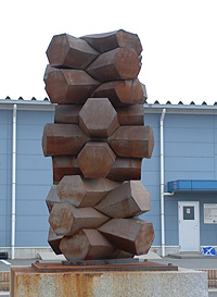 2000年10月に直方鉄工協同組合様の依頼で制作させていただいた「FORGING COMPRESSION 2000 From fifteen columns」のコンセプトは、100年に及ぶ歴史の中で築きあげられた直方鉄工協同組合様の持つ鉄鋼加工技術、ノウハウをアート作品を生み出す技術として駆使し、今までに生産されなかった「鉄鋼製品→鉄鋼彫刻」を制作することにしました。